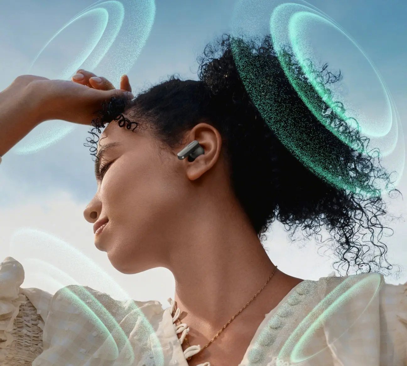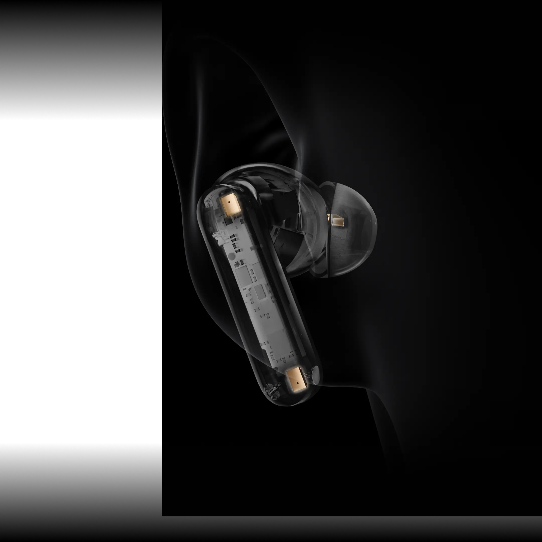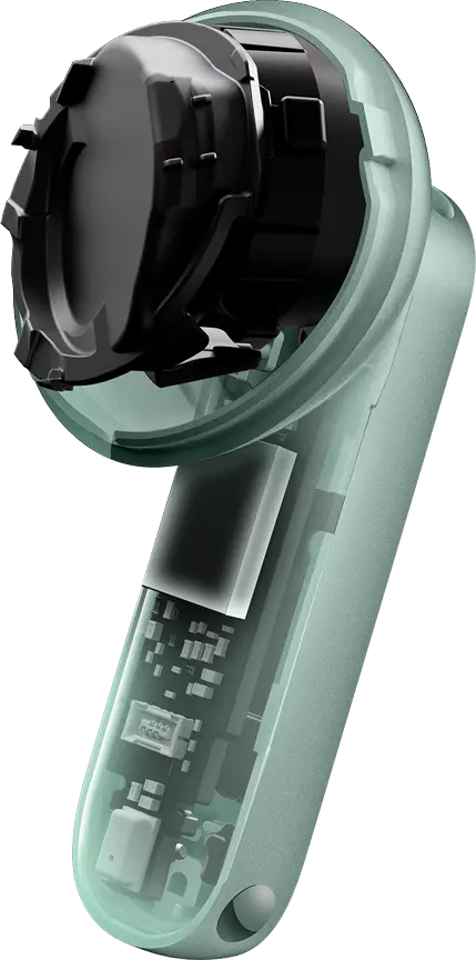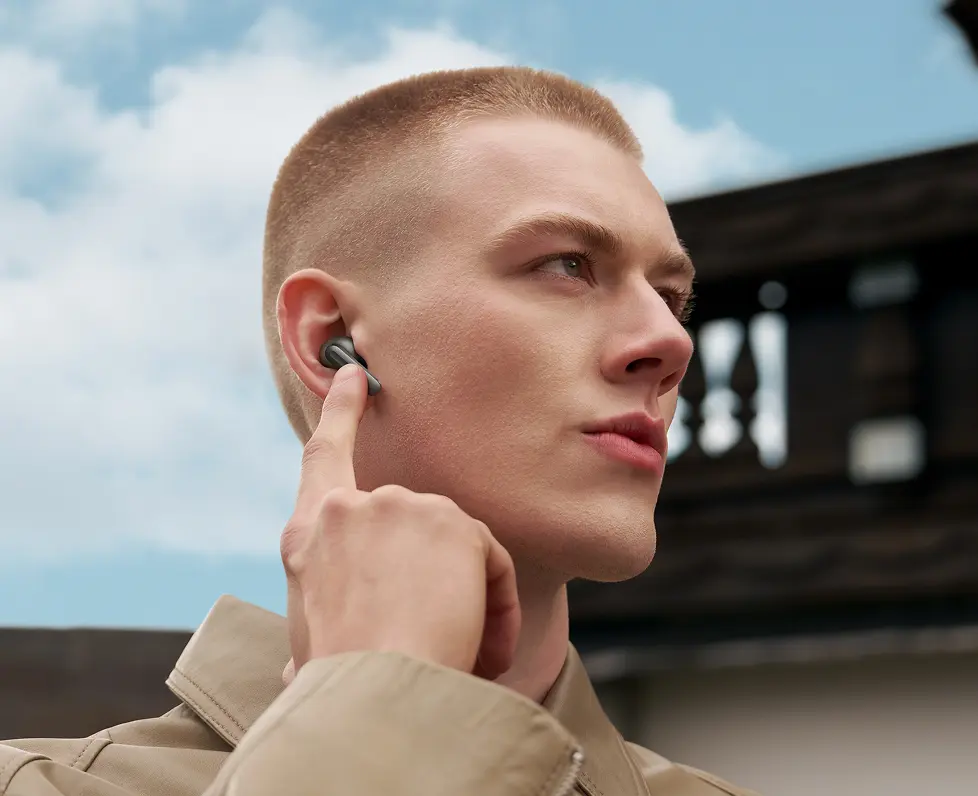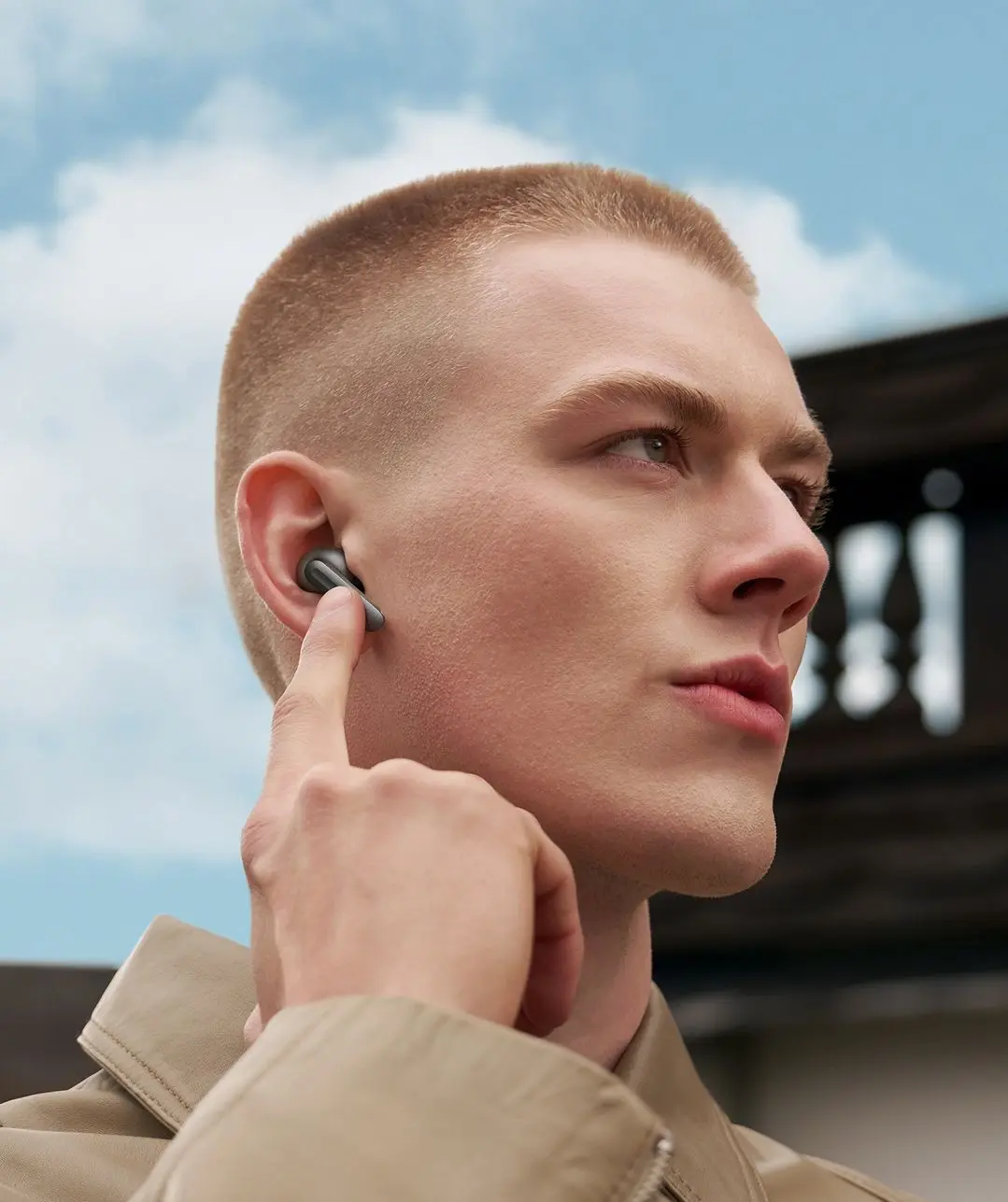 Проведите пальцем вверх или вниз, чтобы отрегулировать громкость, удерживайте ножку, чтобы переключать режимы шумоподавления и прозрачности. Включайте, останавливайте, переключайте треки. Настройте элементы управления под себя.